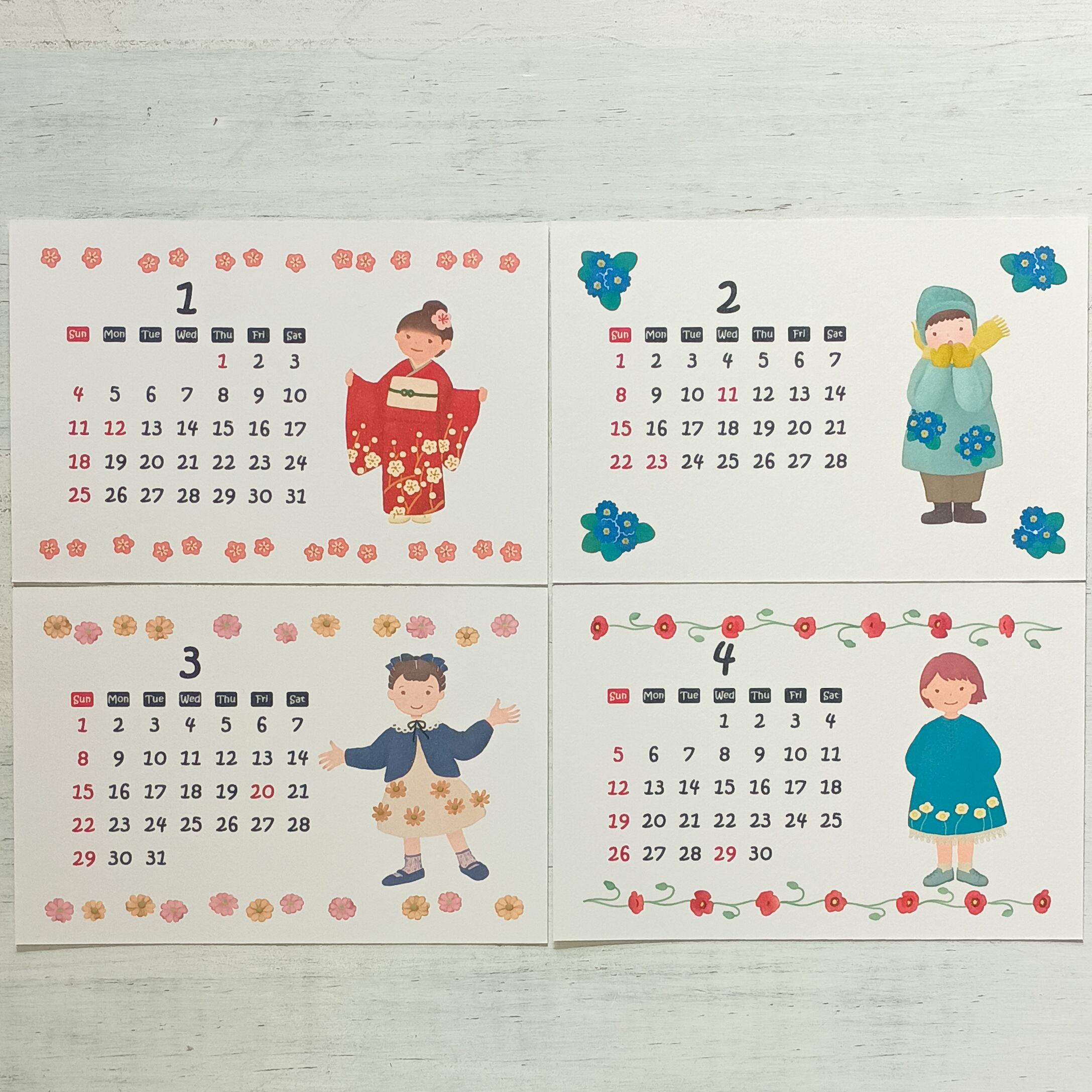 2026年のカレンダーです 花を着た少女たち ポストカードサイズなので、お手持ちのフレームに入れたり、壁に1年分貼り付けたりご自由にお使いください サイズ:100×148mm(ハガキサイズ)