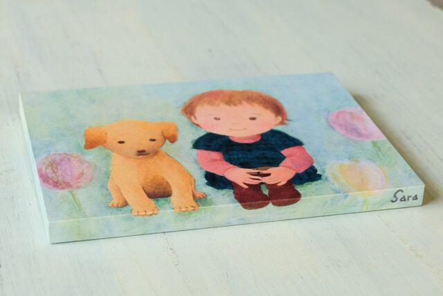 その絵を表情のある紙にプリントし、木製の板に張り付けて作りました。