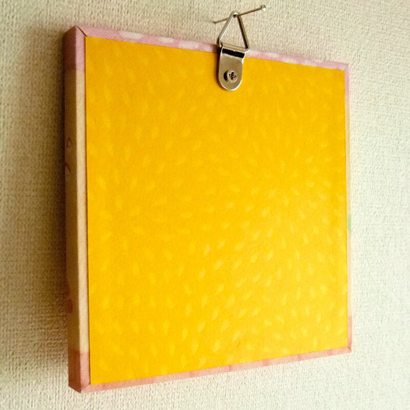 その絵を表情のある紙にプリントし、木製の板に張り付けて作りました。